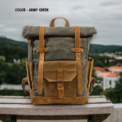 De rugzak is vervaardigd uit sterk en waterbestendig gewaxt canvas, wat betekent dat je waardevolle spullen veilig blijven, zelfs in regenachtige omstandigheden. De onderkant is afgewerkt met hoogwaardig leer, wat niet alleen een luxe uitstraling geeft, maar ook extra duurzaamheid biedt. Elk detail is met zorg ontworpen om ervoor te zorgen dat deze rugzak jarenlang meegaat.